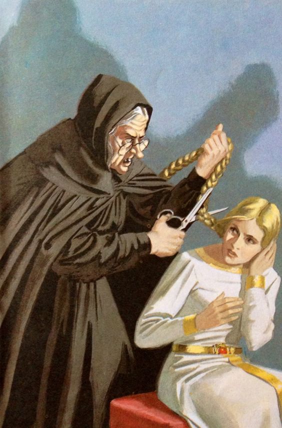 Raperonzolo aveva infatti capelli lunghi e bellissimi, sottili come oro filato. Quando la maga chiamava, ella scioglieva le sue trecce, annodava i capelli in alto, al contrafforte della finestra, in modo che essi ricadessero per una lunghezza di venti braccia, e la maga ci si arrampicava.