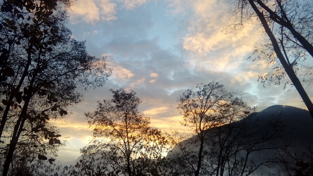 Il senso di tutto questo? Il senso è tentare di dare un senso. Lo faccio di volta in volta, attimo dopo attimo e spesso ho delle rivelazioni, dei lampi di luce. Il lampo più frequente è quello che riguarda una parola magica ed è sempre la stessa, declinata in mille variabili, in mille lingue e in mille modi; la parola magica è AMORE. Alla fin fine, quando tolgo il telo dal terreno che profuma di terra, mentre infilo il profumo di terra nello zaino, è questo che mi porto via. Il senso sta tutto lì dentro, in quella parola e in tutto il bagaglio infinito che si porta dietro. Amore per me stessa, per la Bellezza che mi circonda e che da anni mi accoglie; Amore per il mio cane, per i miei gatti, per il Sole, che splende, ma che non bisogna dare mai per scontato. Amore per le foglie, per i colori, per la pace dei momenti di silenzio, che nei boschi non è mai totale, ma è più una musica; Amore per le forme infinite, per gli occhi piccoli e curiosi che mi osservano e per gli esseri invisibili che io non posso osservare, ma che fortunatamente posso vedere. Amore per la terra fertile, per l’aria fresca, per la neve che illumina il cielo e Amore per l’acqua che scorre in rivoli e in ruscelli e in fiumi. Amore per chi ha ideato e creato tutto, anche i miei simili, che sono la cosa più difficile da amare, diciamoci la verità. Eppure è Amore, anche e forse soprattutto per loro.